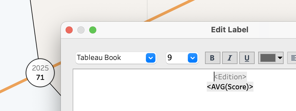 To add detail to the marks, change the mark type to circle so they are much better visible, and add labels to these marks with the values. In the example, both the year and the value are shown