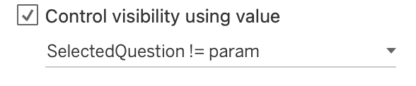 This calculation is used in the ‘Control visibility using value’ configuration on the dashboard: