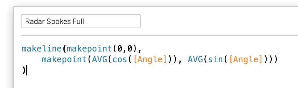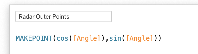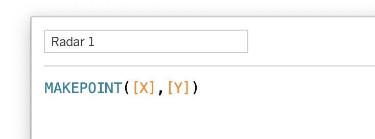 The radar chart will be built using map layers. The MAKEPOINT function combines the X and Y coordinates: