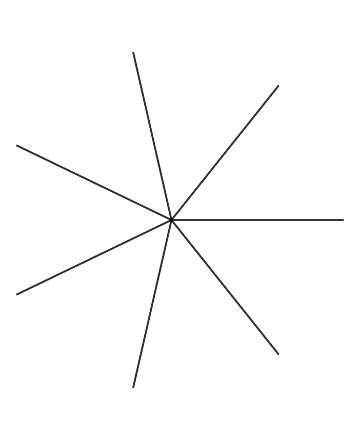 A radar chart requires one axis per dimension. Each dimension is assigned an angle, and from that angle a radial line is drawn from the center of the chart outward to the edge of the radar.