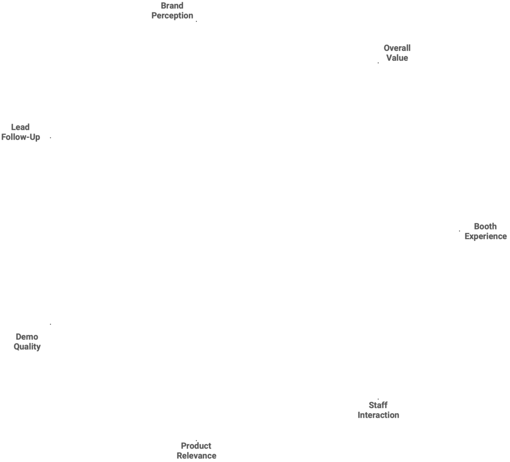 In this example, I’m using survey data collected at a tradeshow. Questions are grouped into dimensions such as: