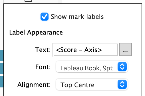 Add the [Radar Labels] as a map layer to the sheet, switch the viz-type of this layer to ‘circle’, and minimize the size. Then add the [Score – Axis] to the label, and set the Alignment to ‘Top Centre’ to make it really look like an axis.