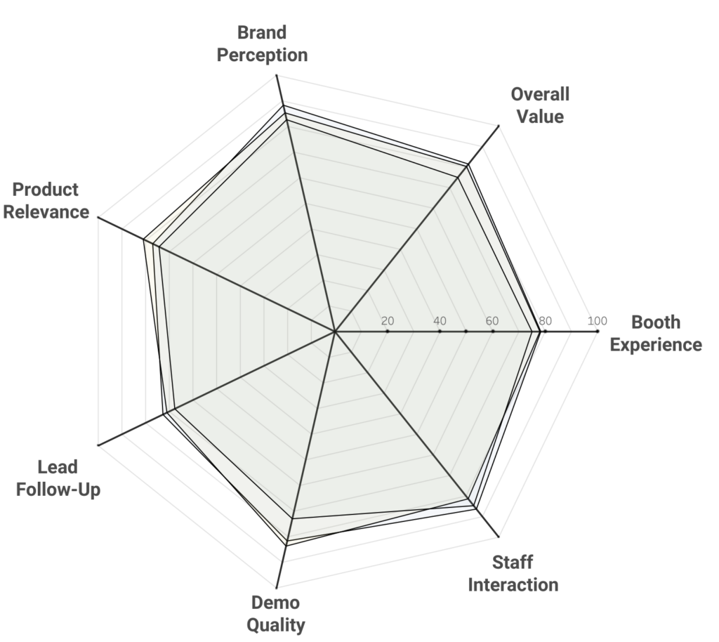 Together these survey questions give a good overview on the ‘human’ performance of a show, and we can compare these values to other editions (e.g. previous years), or to different kind of visitors (e.g. Existing Customers, Partners, Prospects)