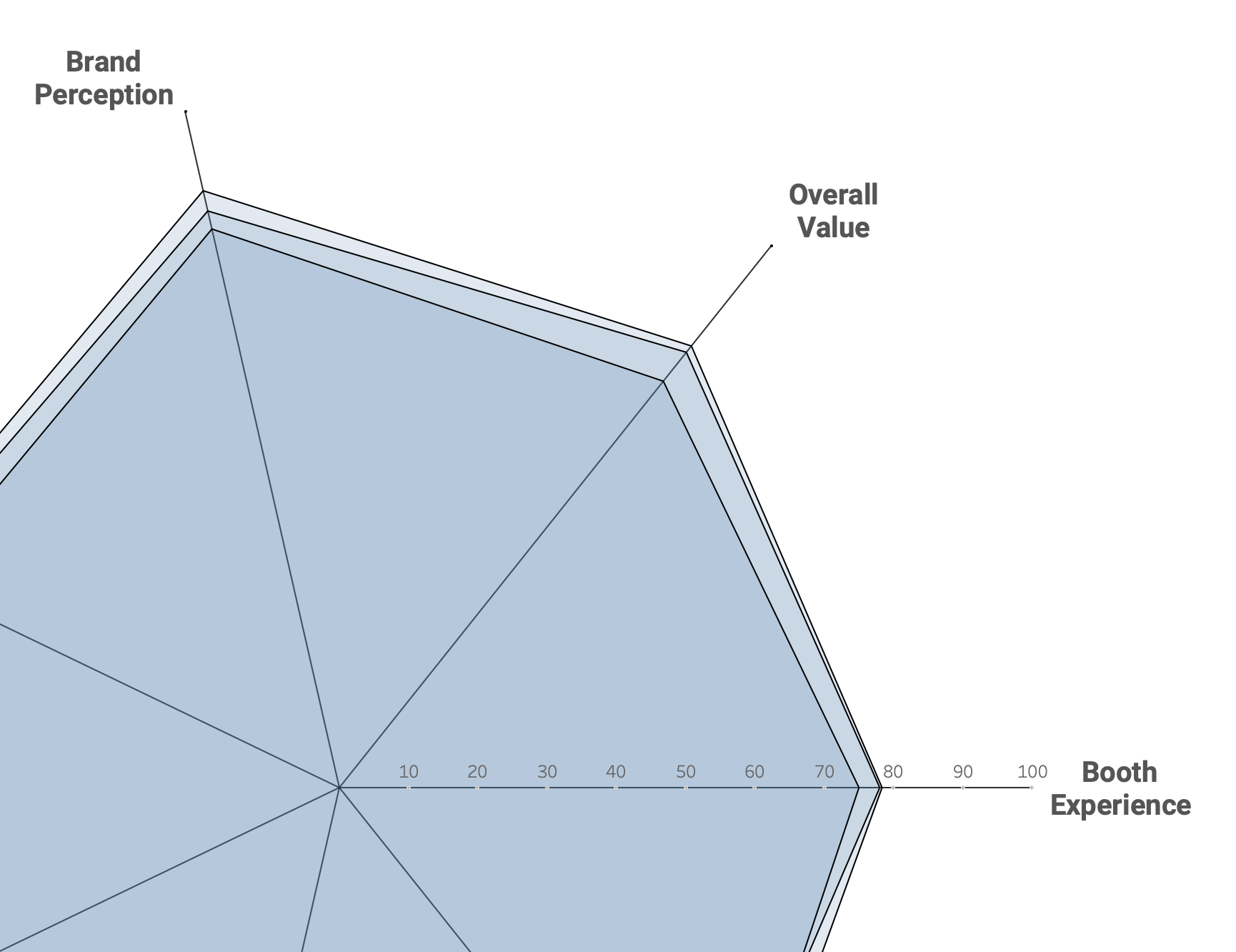 In this example, I’m using survey data collected at a tradeshow. Questions are grouped into dimensions such as: